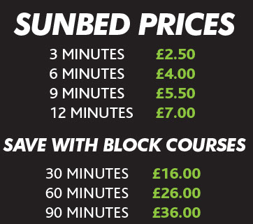 PLEASE NOTE: OUR SUNBEDS ARE AVAILABLE FOR USE AT ALL TIMES DURING GYM OPENING TIMES